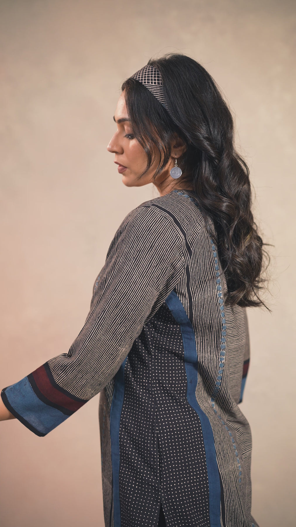 Aakaar Black Ajarakh Cotton Kurta | Ray-ethnic