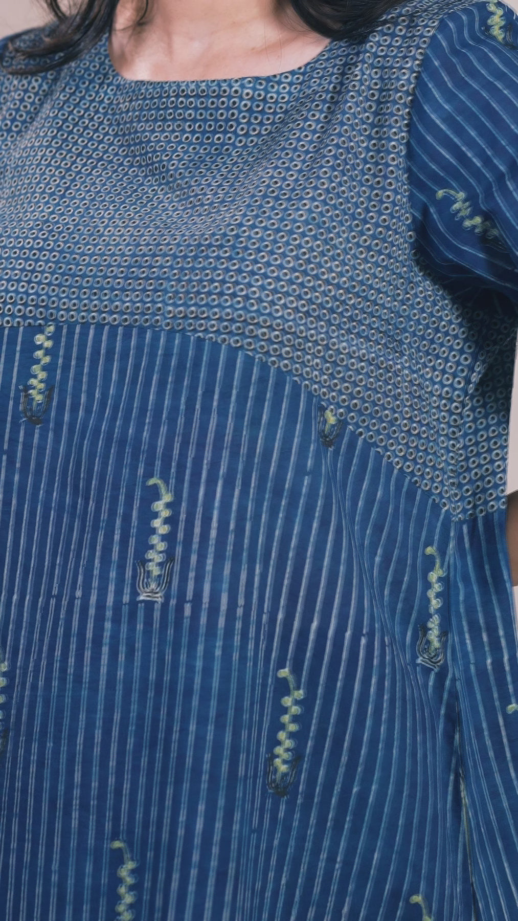 Aakaar Blue Ajarakh Cotton Kurta | Ray-ethnic