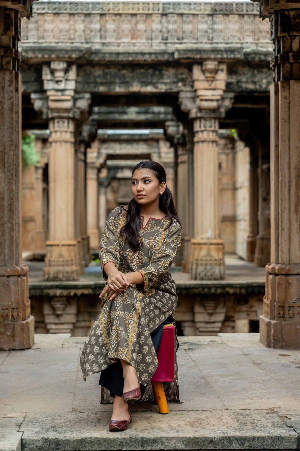 Natural-dyed and printed colours might bleed during the first few washes or rub against the skin & other light-coloured garments. Natural Colours also get affected due to perspiration. In the artful process of hand block printing, embroidery work and stitching, variations are likely to come into existence. These irregularities are the hallmark of all handmade products and give each style a unique identity. Ajarakh, Dabu, Kalamkari and Indigo are all printed using natural colours