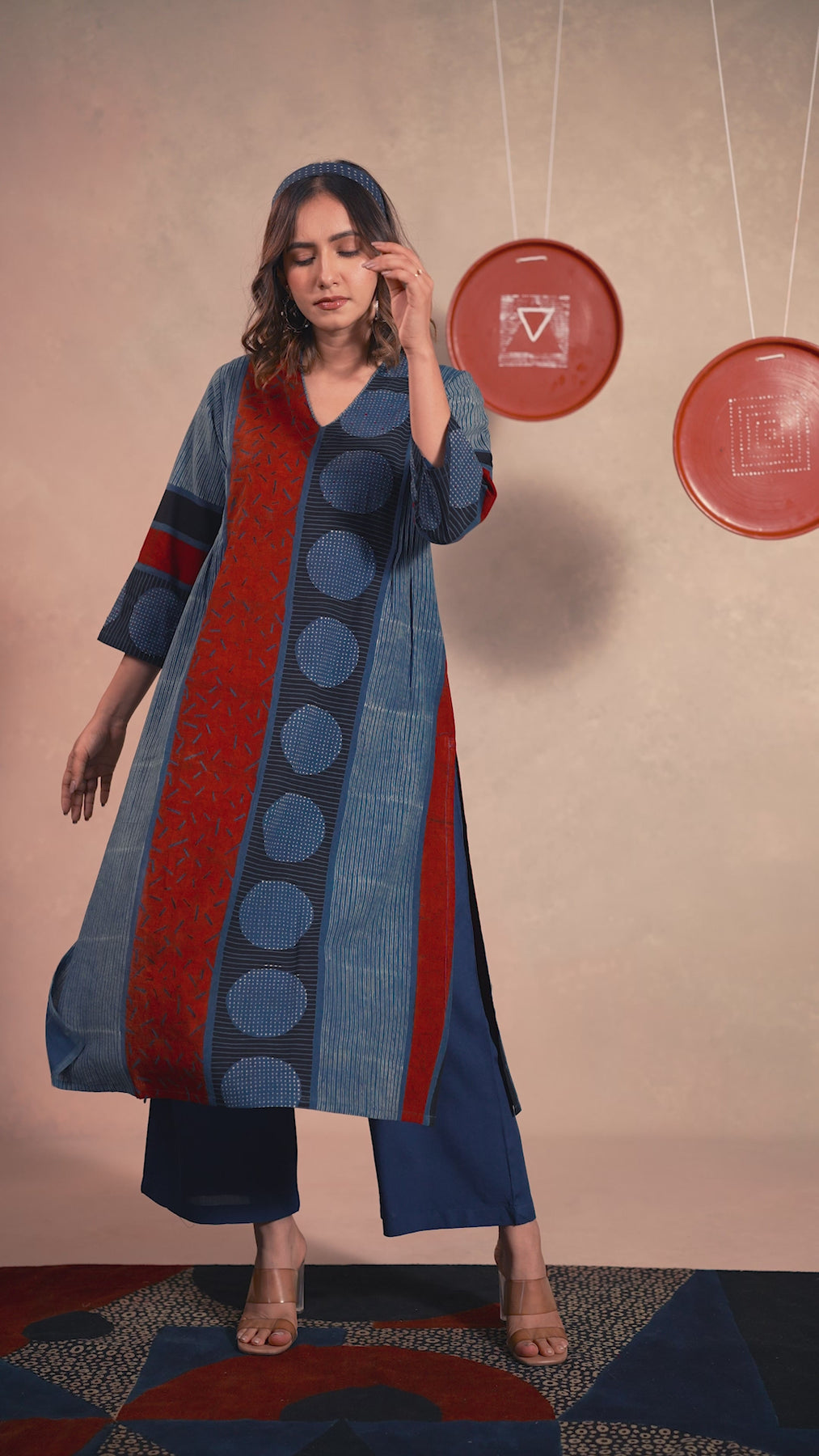 Natural-dyed and printed colours might bleed during the first few washes or rub against the skin & other light-coloured garments. Natural Colours also get affected due to perspiration. In the artful process of hand block printing, embroidery work and stitching, variations are likely to come into existence. These irregularities are the hallmark of all handmade products and give each style a unique identity. Ajarakh, Dabu, Kalamkari and Indigo are all printed using natural colours