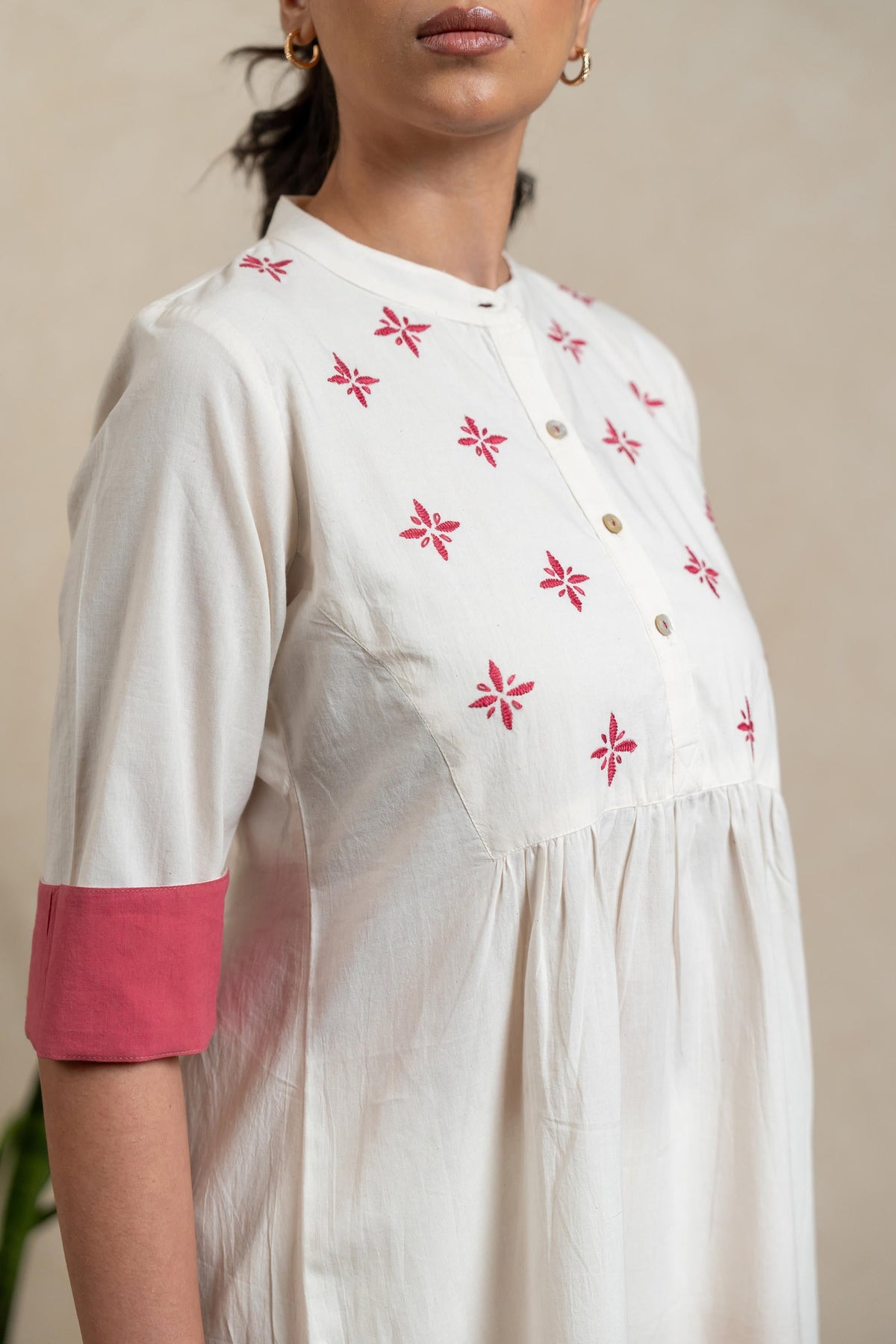 Natural-dyed and printed colours might bleed during the first few washes or rub against the skin & other light-coloured garments. Natural Colours also get affected due to perspiration. In the artful process of hand block printing, embroidery work and stitching, variations are likely to come into existence. These irregularities are the hallmark of all handmade products and give each style a unique identity. Ajarakh, Dabu, Kalamkari and Indigo are all printed using natural colours
