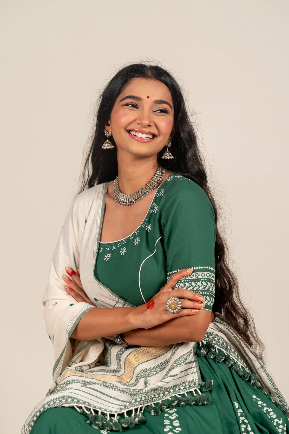 Handloom Kala Cotton Dupatta in Green – NavRas