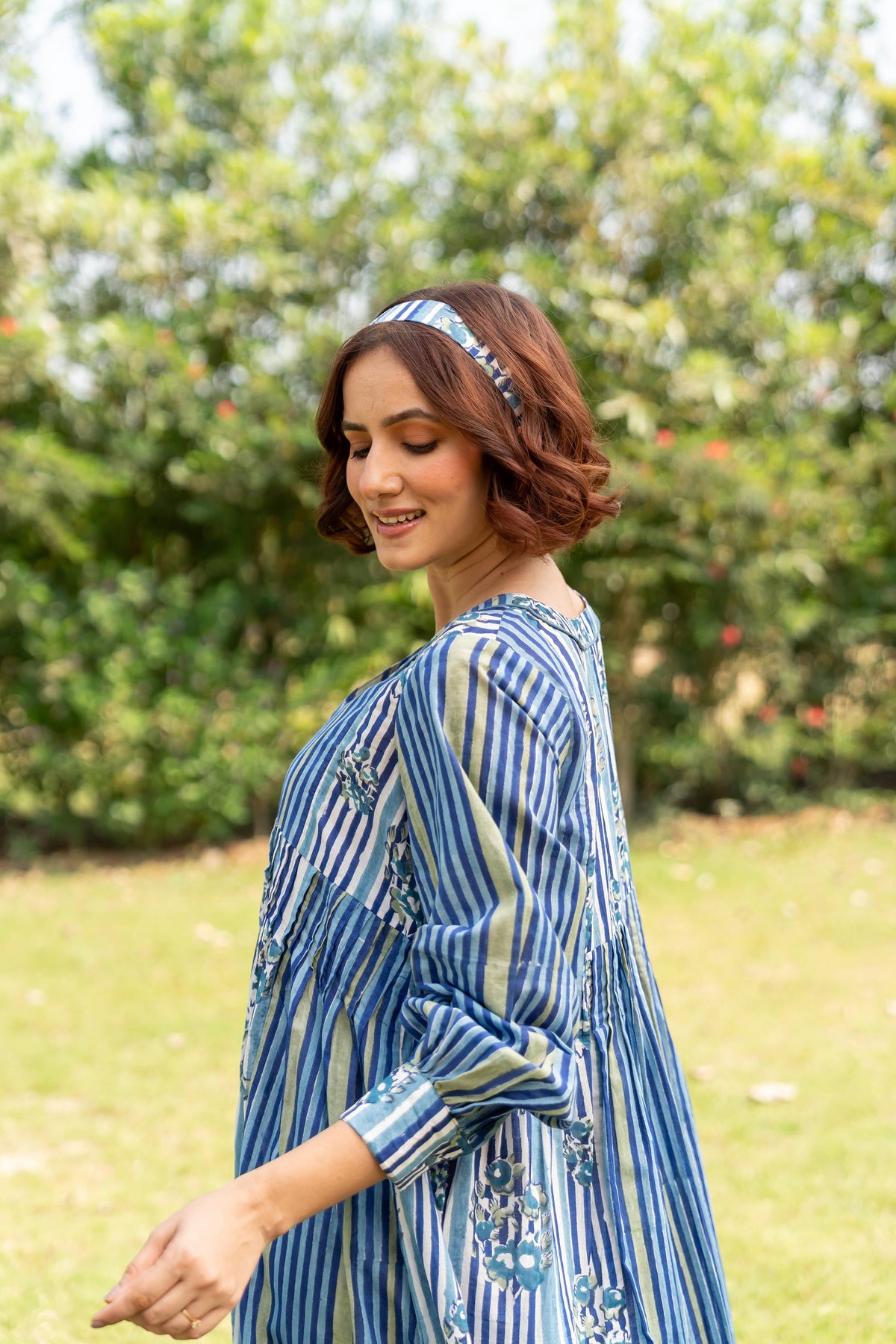 Gul Blue Block Print Cotton Dress | Ray-ethnic