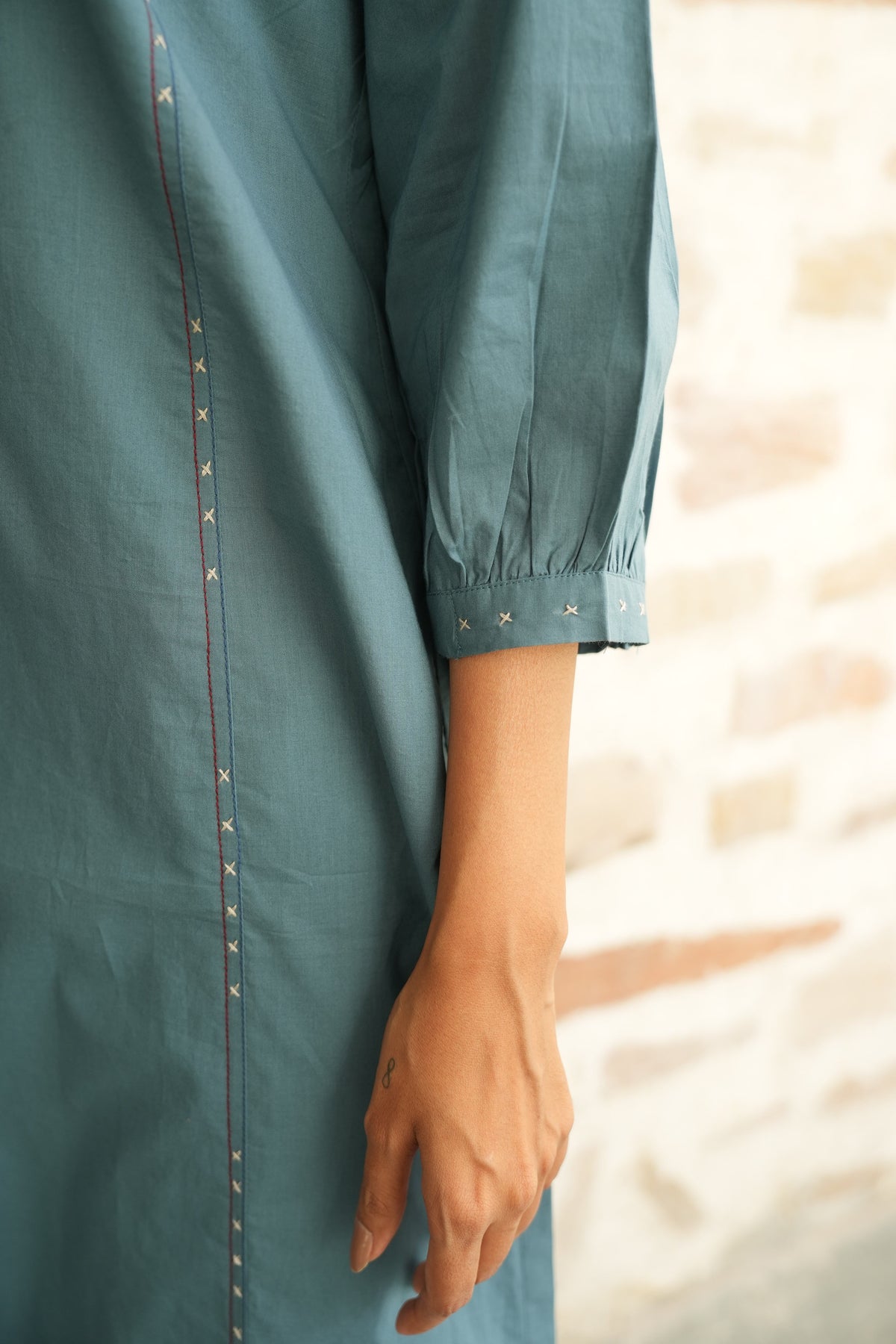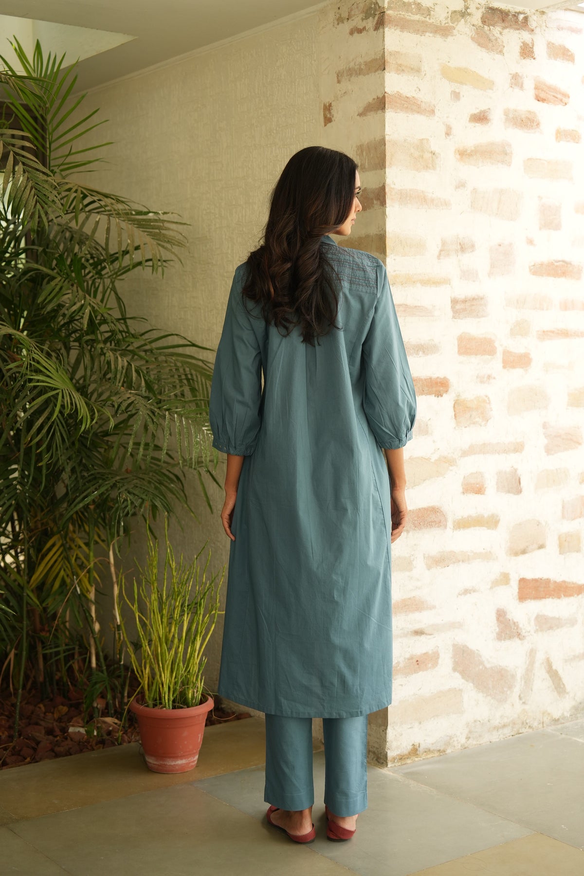 Natural-dyed and printed colours might bleed during the first few washes or rub against the skin & other light-coloured garments. Natural Colours also get affected due to perspiration. In the artful process of hand block printing, embroidery work and stitching, variations are likely to come into existence. These irregularities are the hallmark of all handmade products and give each style a unique identity. Ajarakh, Dabu, Kalamkari and Indigo are all printed using natural colours