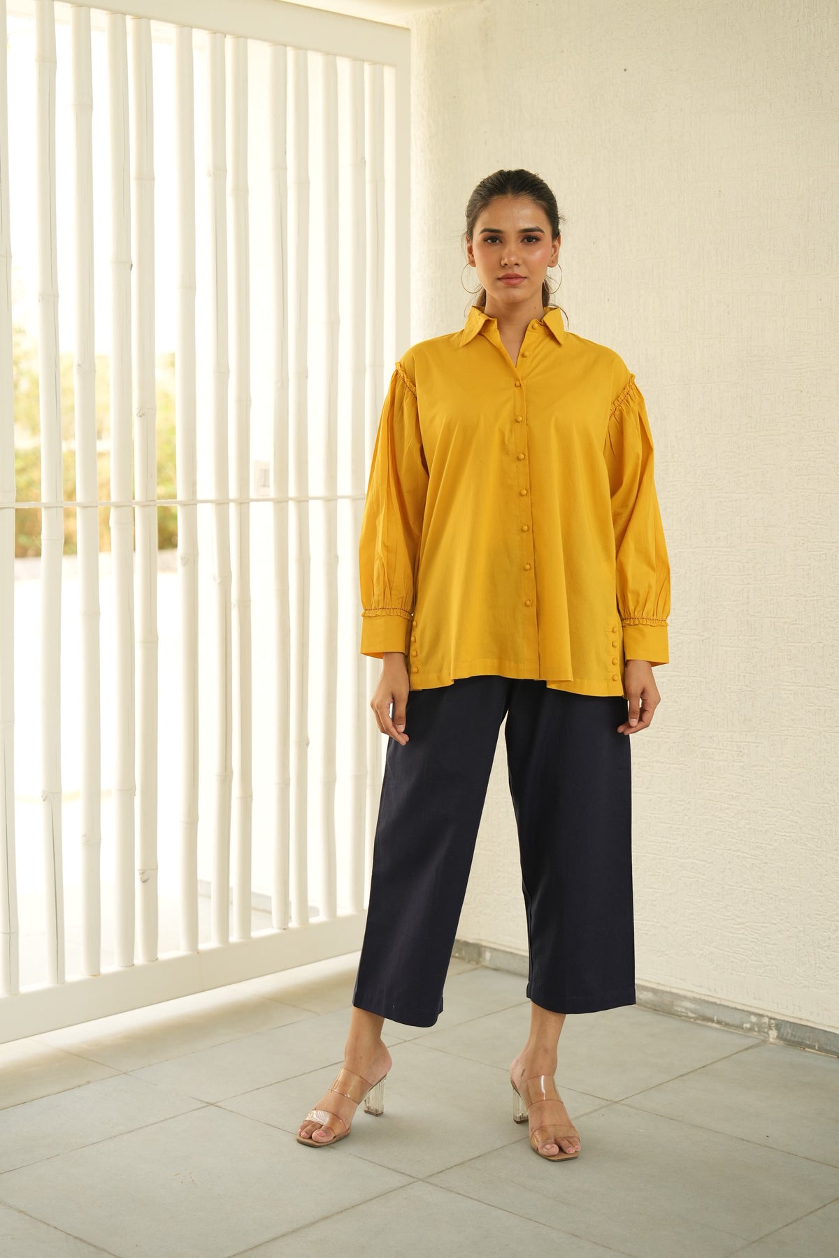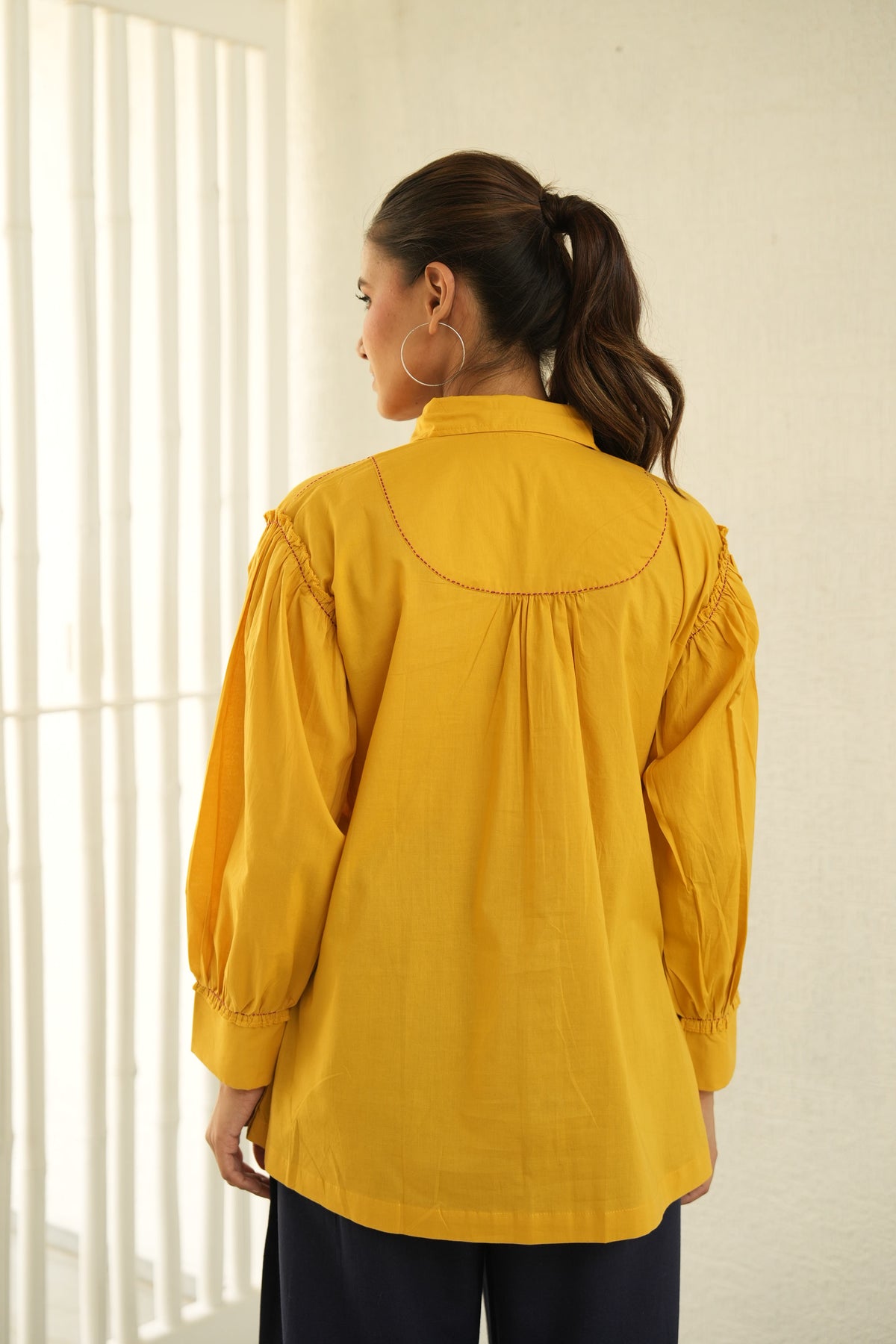 Saral Mustard Gathered Sleeve Cotton Top | Ray-ethnic